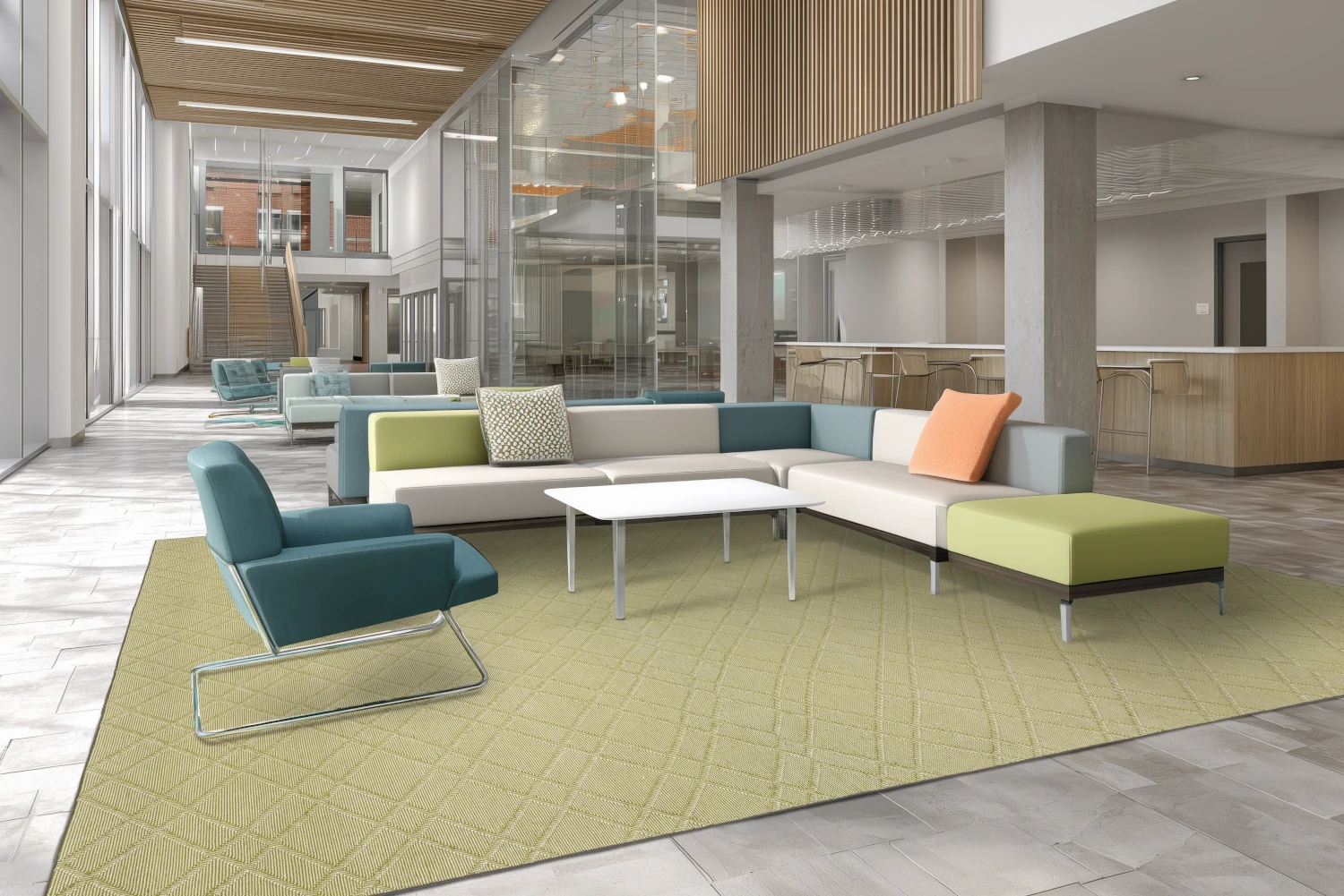 Available as shown or recolor from the PET palette, with custom colorways offered for large-scale projects. Maximum dimensions are 15 feet in width and 30 feet in length. The construction features a 6-6.5mm pile height for a refined, low-profile finish. Canopy is rated for severe traffic at 3.5 with a lightfastness rating of 3.0. Custom cut indoor and outdoor rug pads are available to improve airflow and drying and are required to maintain warranty. A minimal upcharge applies. Most sizes ship within approximately 16-18 weeks from signoff to production.