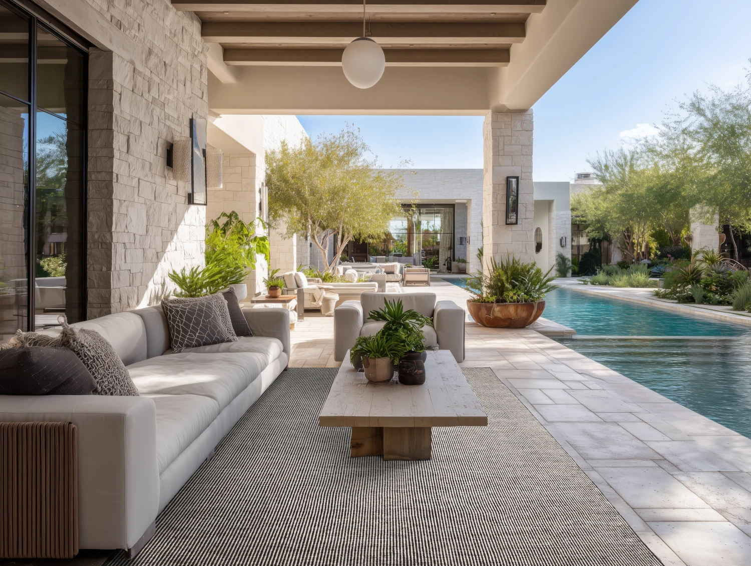 Available as shown or recolor from the PET palette, with custom colorways offered for large-scale projects. Select a mix of two lighter colors accompanied by a mix of two darker colors. The ribbing lays vertical unless otherwise specified. Maximum dimensions are 15 feet in width and 30 feet in length. The construction features a 6mm pile height for a refined, low-profile finish. Wanderlust is rated for severe traffic at 3.5 with a lightfastness rating of 4.0. Interior and exterior rug pads can be cut to size and shape for a nominal upcharge. Most sizes ship within approximately 16-18 weeks from signoff to production.